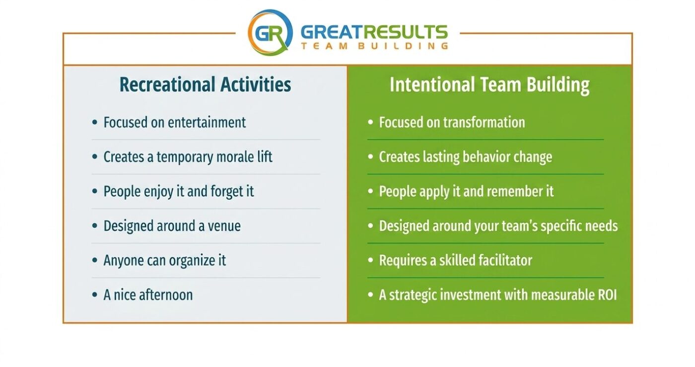 What they had experienced wasn’t team building. It was recreation with a name tag on it.